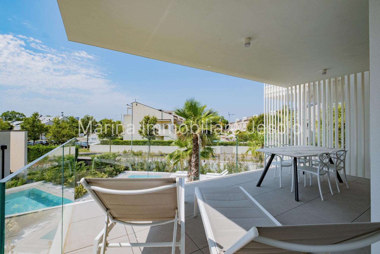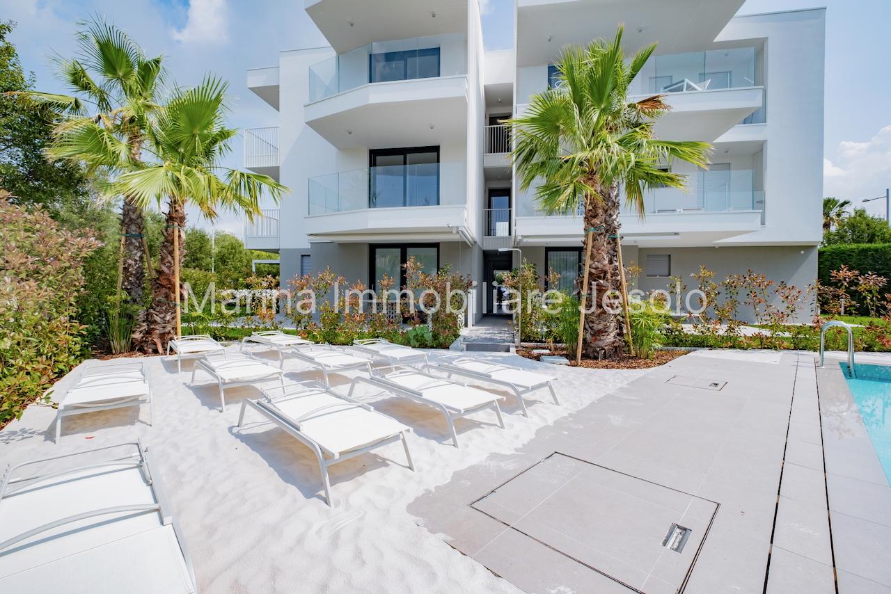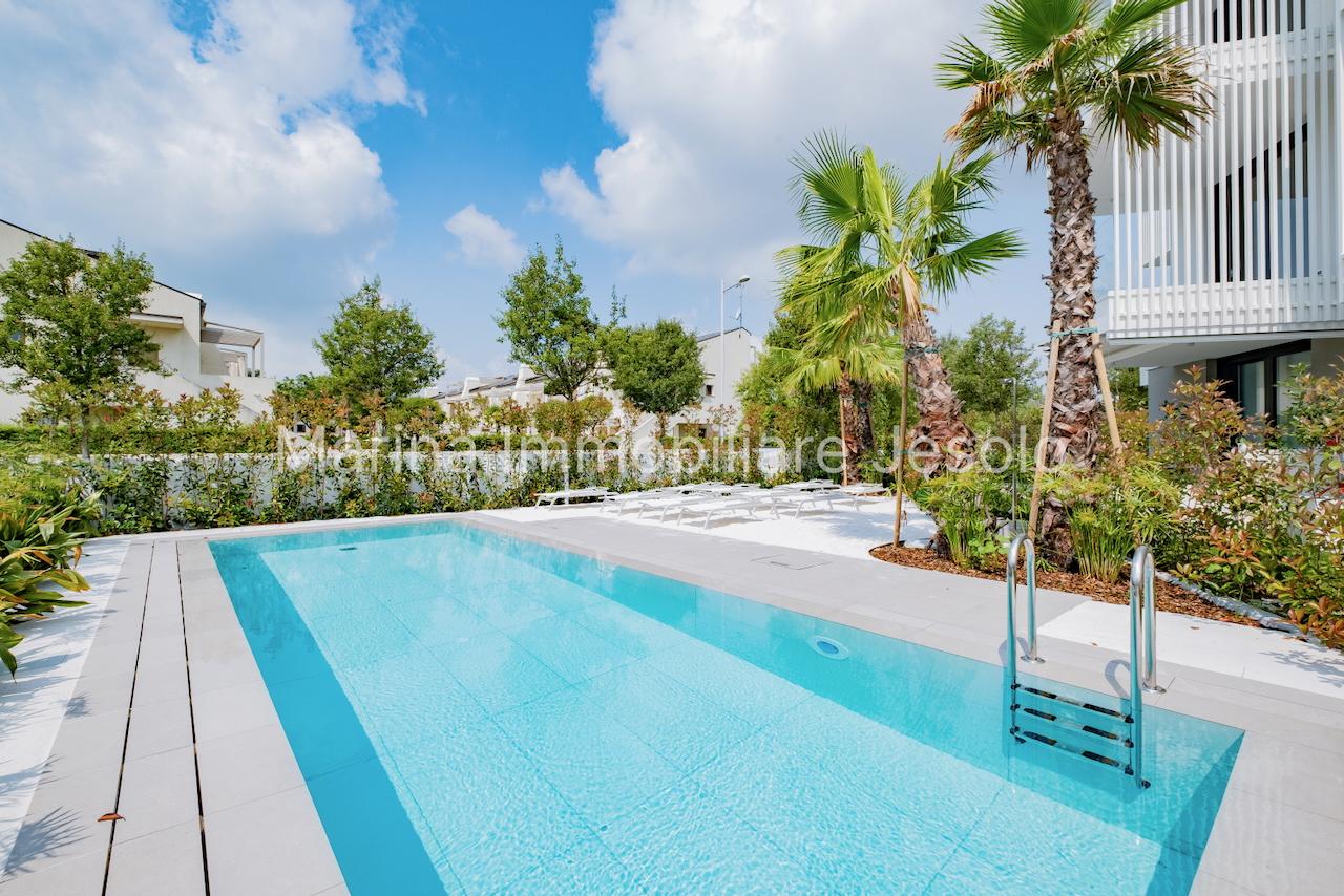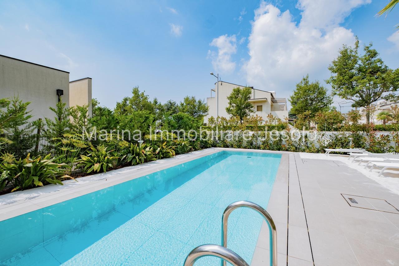 Nuova costruzione a 500 mt. dal mare nella centralissima zona di Piazza Aurora con piscina. Appartamento dotato di tutti i comfort al piano 2° con ascensore, così composto: angolo cottura e soggiorno con divanoletto, n. 1 camera matrimoniale, n. 1 camera doppia con letti a castello, n. 2 bagni, ampio terrazzo, WIFI. N.1 Posto auto. Tot. posti letto 6. Posto spiaggia prenotabile presso il consorzio di zona a prezzo extra. Non affittabile a gruppi di ragazzi.