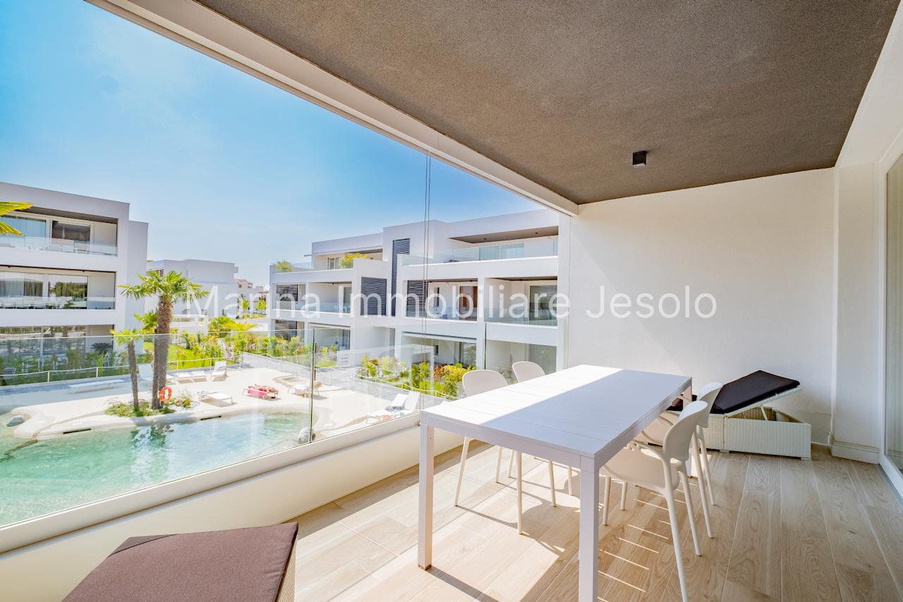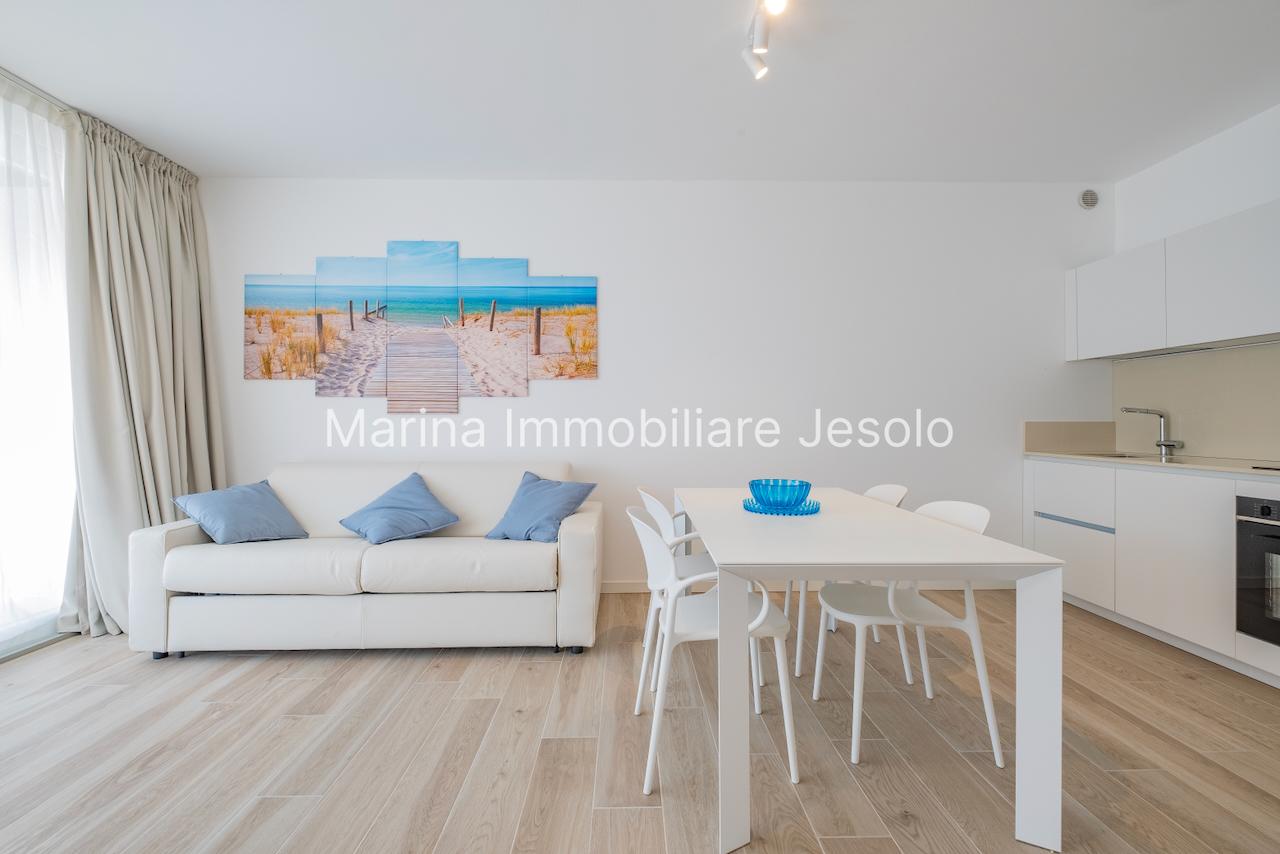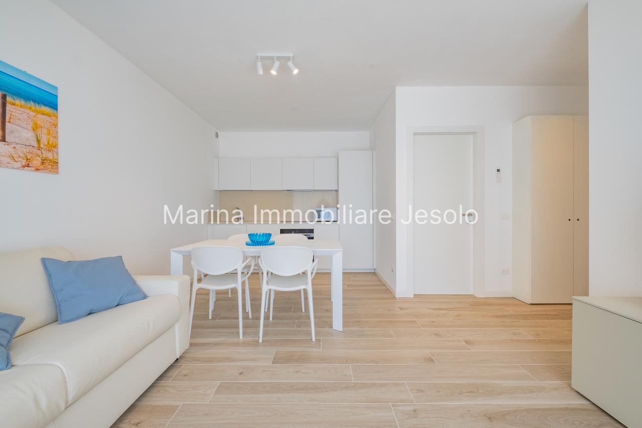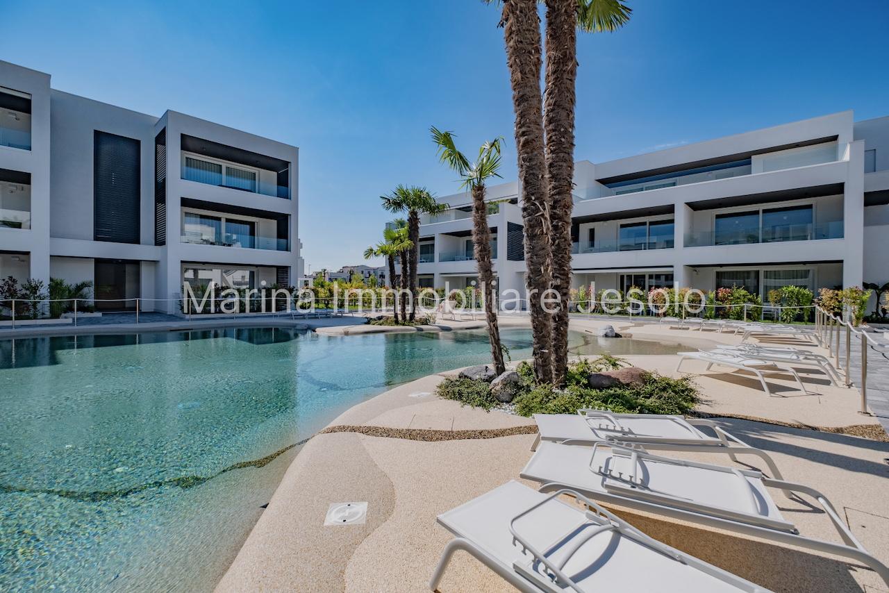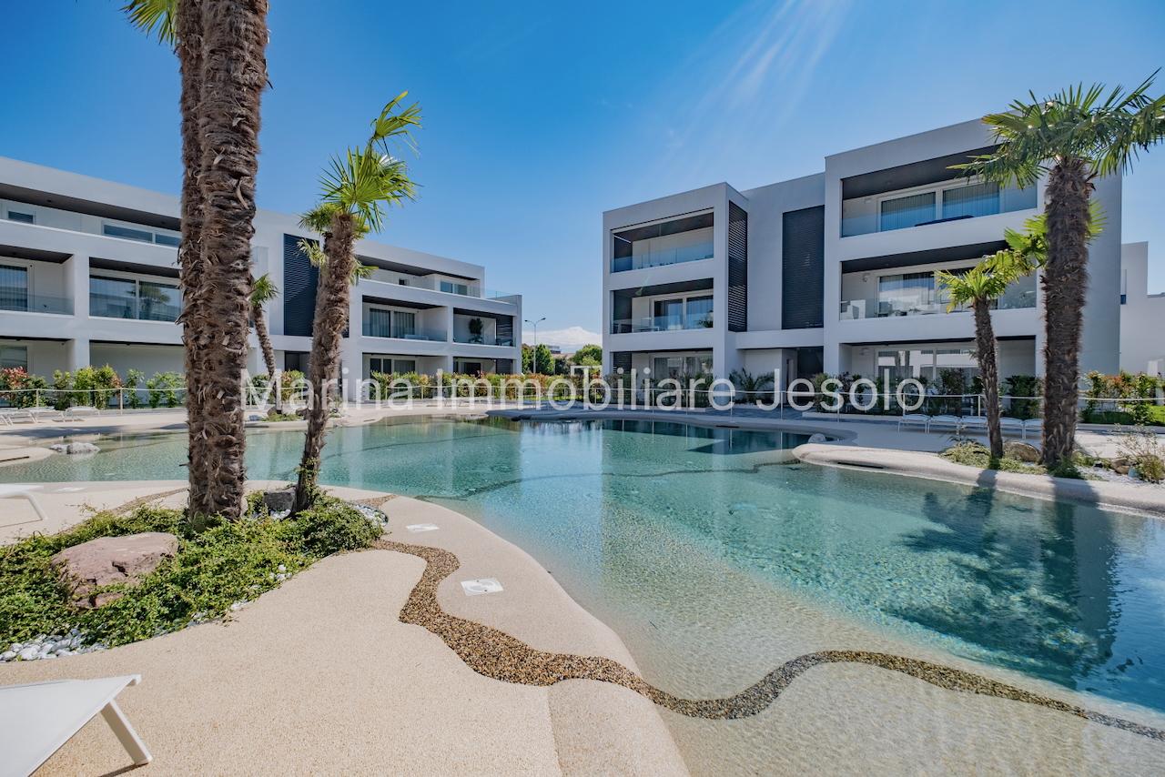 Residence di nuovissima costruzione in zona centrale tra Piazza Aurora - Marina con piscina. Appartamento al 1° piano con ascensore, dotato di tutti i comfort, così composto: angolo cottura e soggiorno, n. 1 camera matrimoniale, n. 1 camera doppia, n. 2 bagni, ampio terrazzo fronte piscina e balcone, posto auto. Totale posti letto 4+2 Posto spiaggia prenotabile presso il consorzio di zona a prezzo extra Non affittabile a gruppi di ragazzi