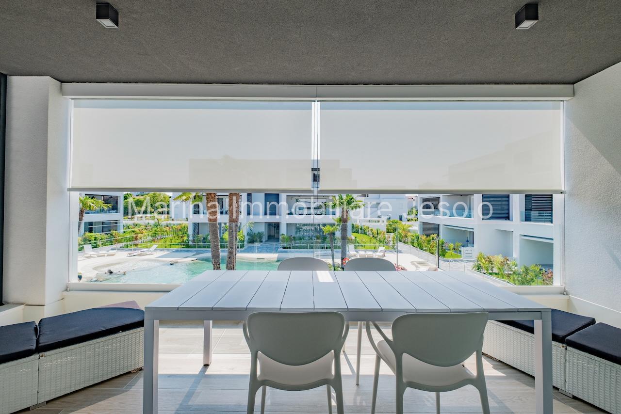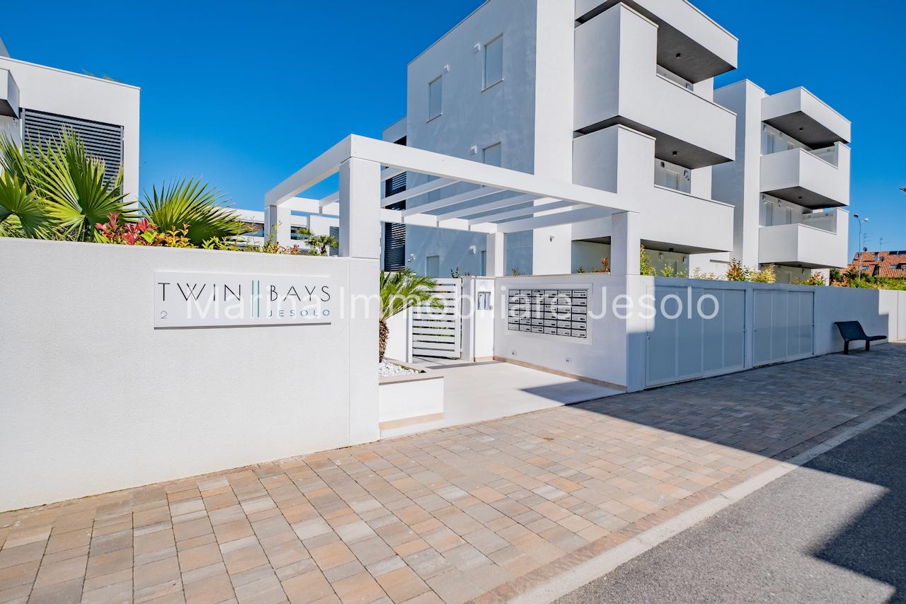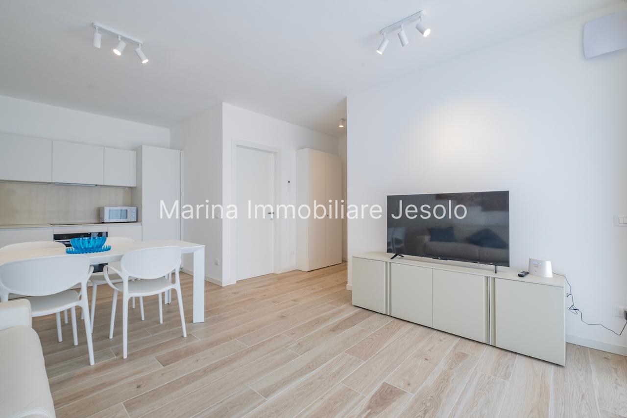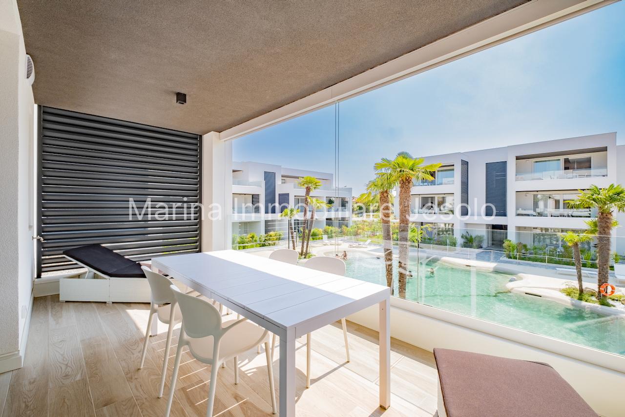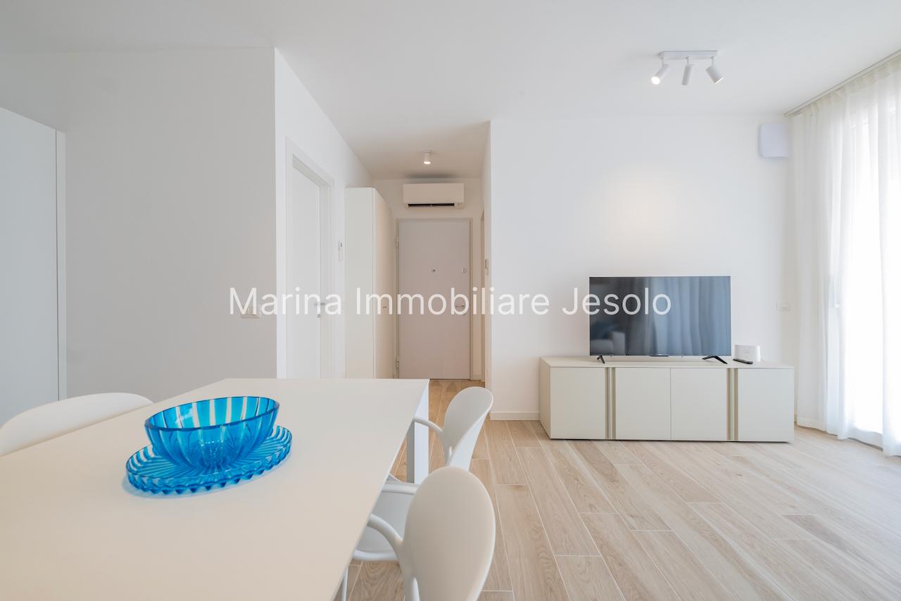 Residence di nuovissima costruzione in zona centrale tra Piazza Aurora - Marina con piscina. Appartamento al 1° piano con ascensore, dotato di tutti i comfort, così composto: angolo cottura e soggiorno, n. 1 camera matrimoniale, n. 1 camera doppia, n. 2 bagni, ampio terrazzo fronte piscina e balcone, posto auto. Totale posti letto 4+2 Posto spiaggia prenotabile presso il consorzio di zona a prezzo extra Non affittabile a gruppi di ragazzi