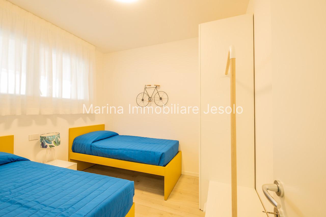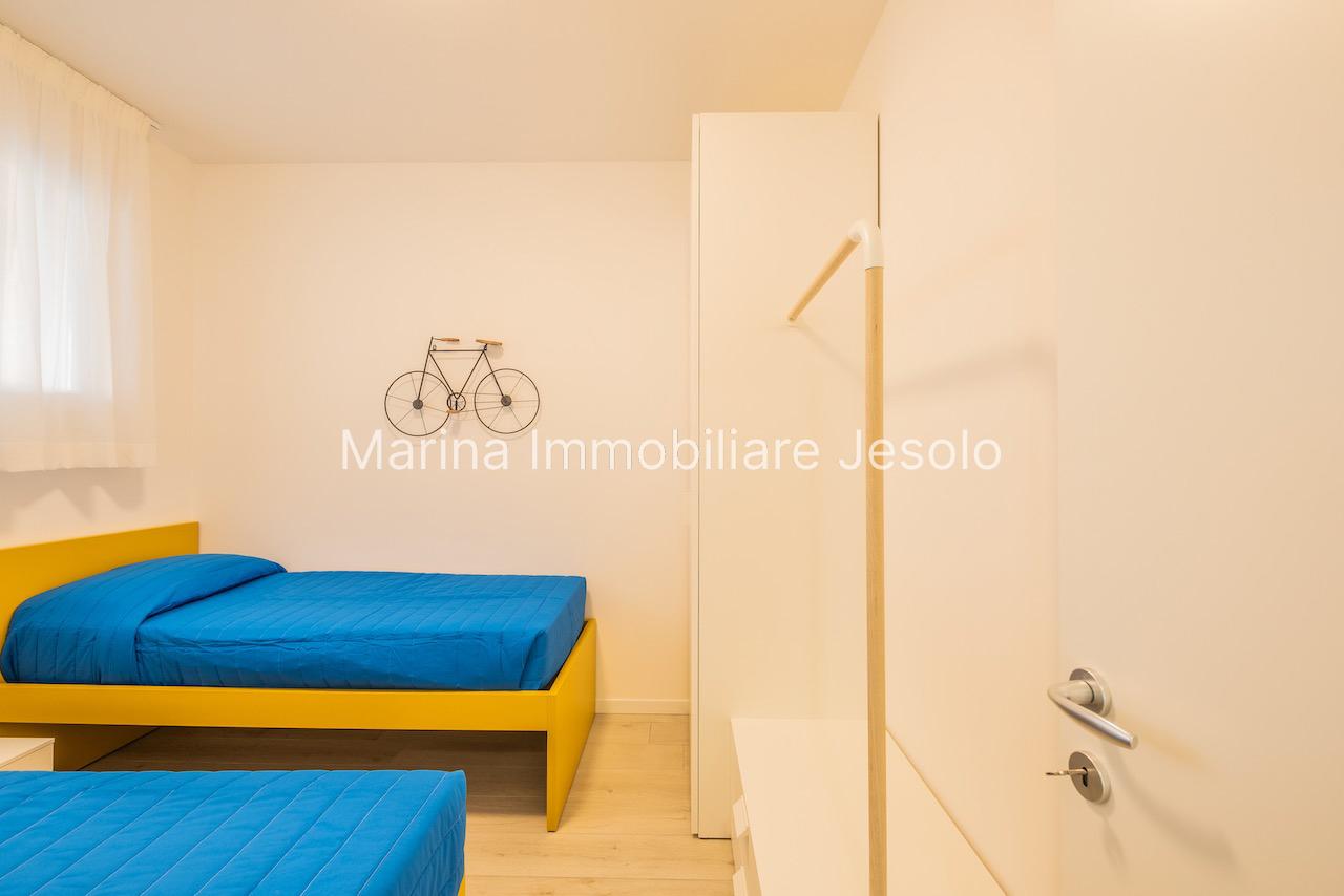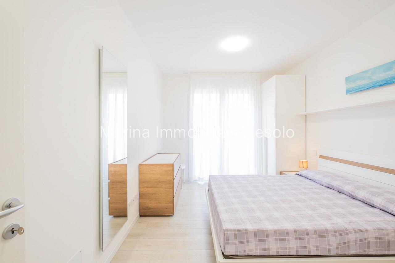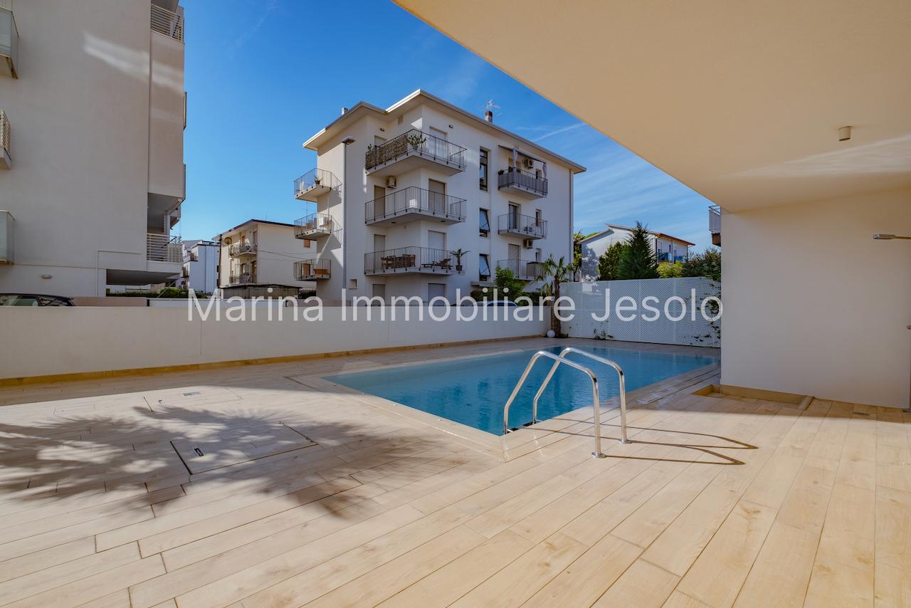 New residence with swimming pool, only 250 meters from the beach, near Marina Square. Ground floor apartment composed of: living room with double sofa bed, kitchenette, bedroom with double bed, bedroom with two single beds, bathroom, small garden. Washing machine, dishwasher, TV, air conditioning, WIFI. N. 1 Parking place is included. N. 1 Beach place is included. Total bed places: 4+2 Rentable only to families.