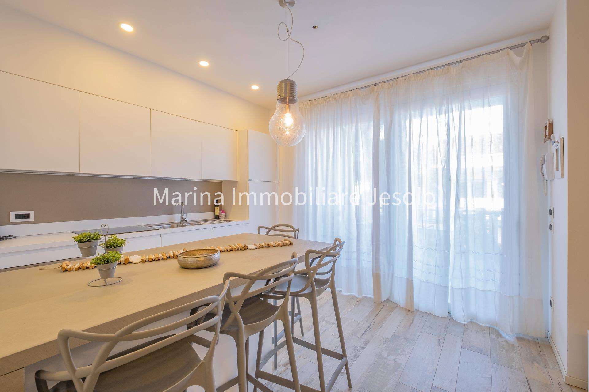 In the central area of Piazza Aurora, 500 mt. from the sea, flat in residence with swimming pool on the first and second floor, with equipped terrace, consisting of: living room, kitchenette, n. 3 double bedrooms, n. 1 bedroom with 2 single beds, n. 2 bathrooms. Washing machine, dishwasher, TV, air conditioning, WIFI. N. 1 parking space included. Beach place excluded: it is possible to book the beach place at the Consorzio. Total beds: 8. Cannot be booked for groups of young guys.