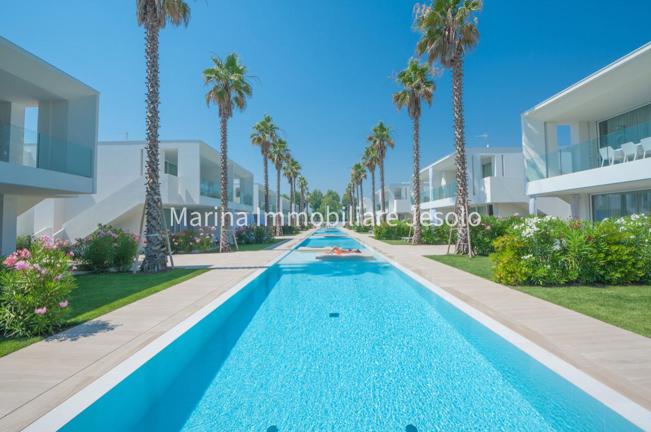 New and modern Residence, only few steps from Mazzini Square and 500 meters from the beach. Built with innovative techniques, with large windows, habitable terraces, garden areas and a central swimming pool with large sunbathing areas. Apartment on the 1st floor, composed of: living room, kitchenette, bedroom with double bed, bedroom with two single beds, bedroom with bunk bed, n. 2 bathrooms with shower. Washing machine, dishwasher, TV, air conditioning, WIFI. N. 1 Parking place is included. Beach place is not included: It is possible to book a beach place at the beach consortium. Total bed places: 6 Rentable only to families.