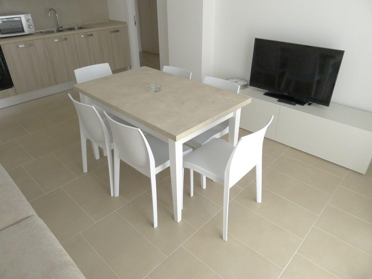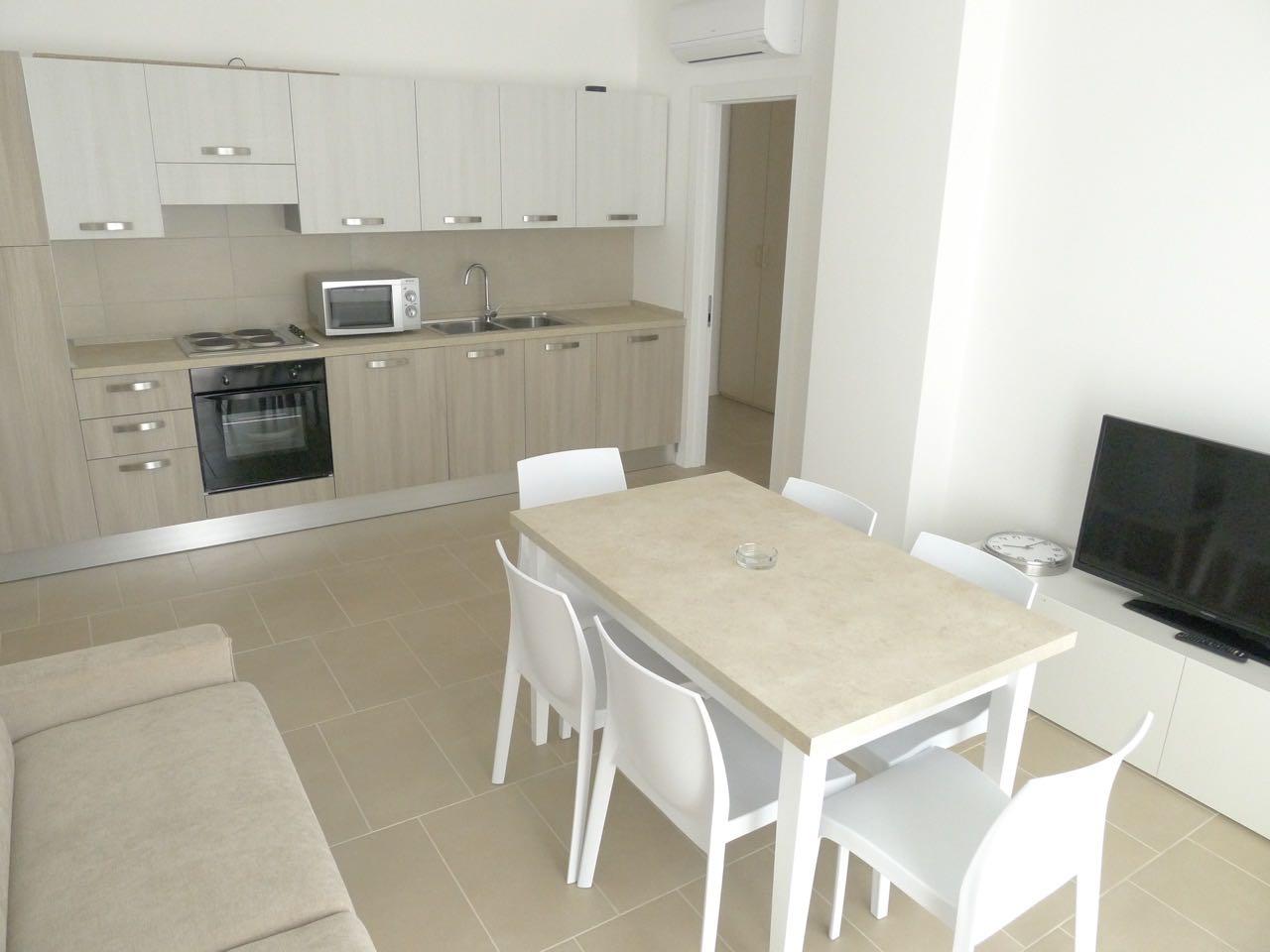 Residence near Nember Square, 500 mt. from the beach. Ground floor apartment, well furnished and complete with all comforts, composed of: living room with sofa bed and kitchenette, double bedroom with single bed, bathroom with shower. N.1 covered parking place is included. Total beds: 3+2