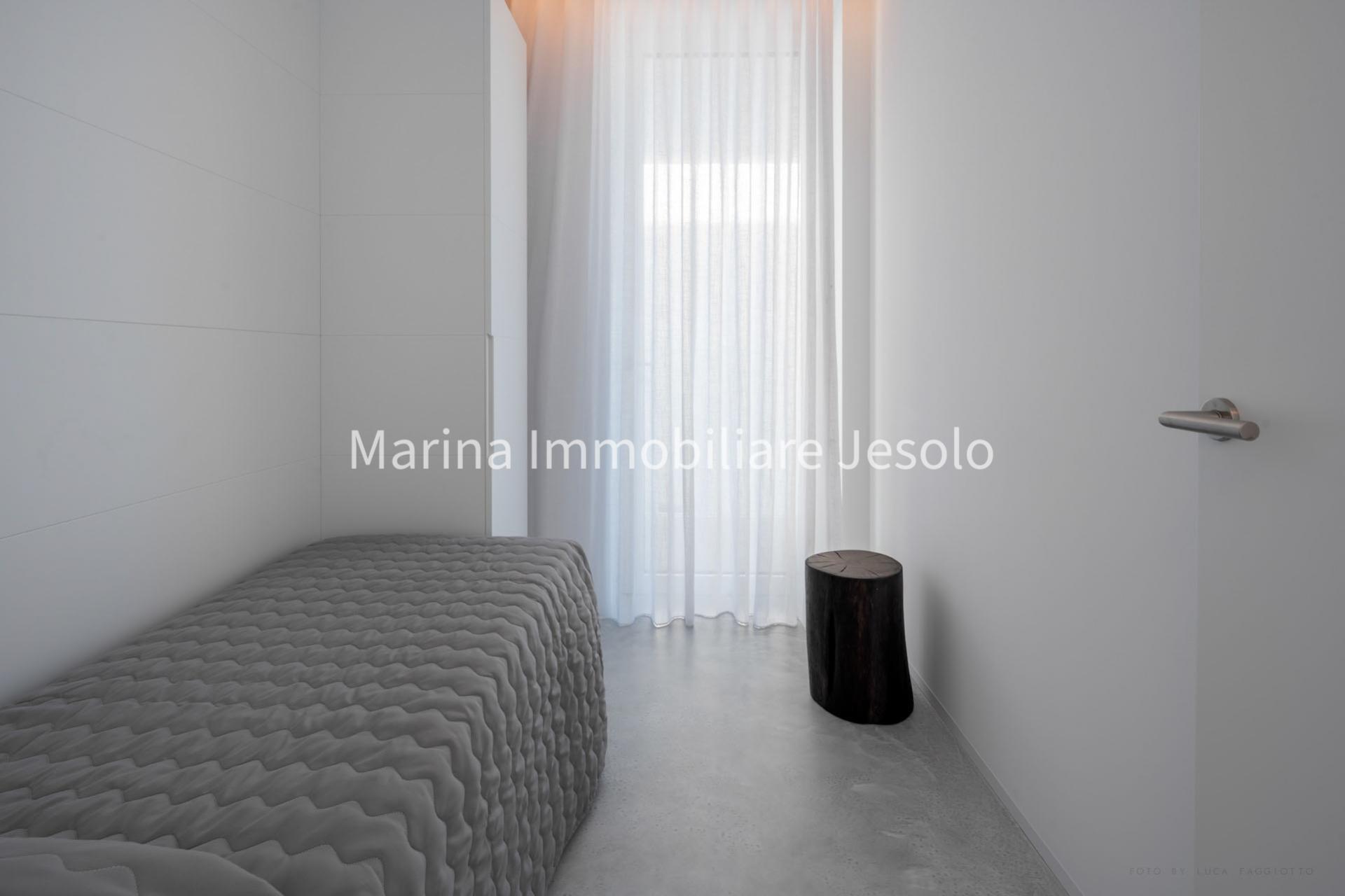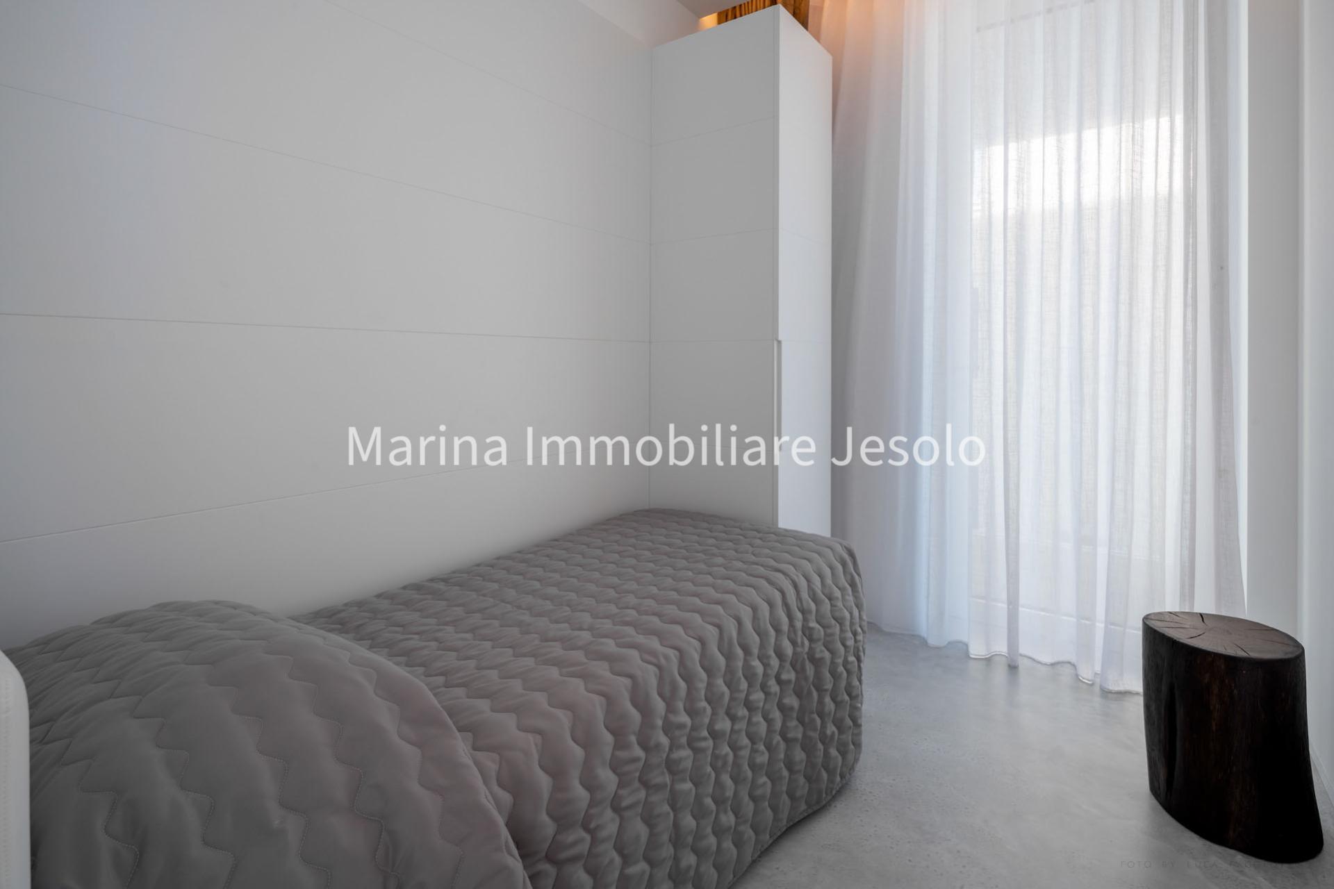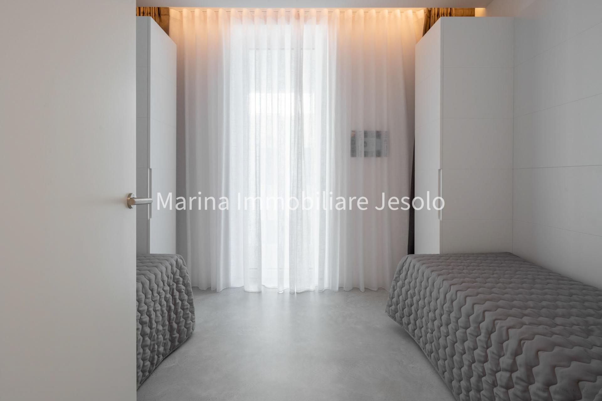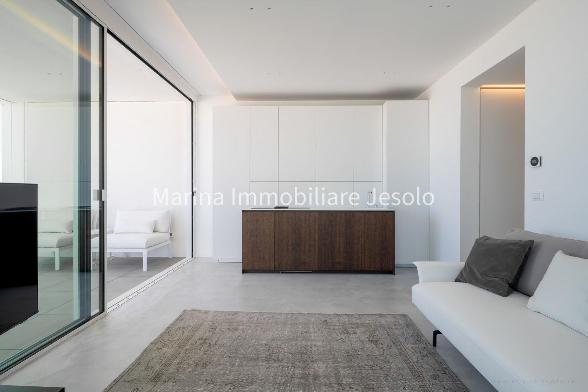 Brand new beachfront residence with swimming pool and private beach, and with modern lines. A small context, with large windows and deep terraces facing the sea. The apartment is located on the 1st floor and it is composed of: living room, kitchenette, n. 1 bedroom with double bed, n. 1 bedroom with two single beds, n. 1 bedroom with a single bed, two bathrooms, big outdoor terrace overlooking the beach. Equipped with every comfort, such as washing machine, dishwasher, TV, air conditioning, microwave, WIFI, linen service. N. 1 Parking place in the underground garage, with lift, is included. Total bed places: 5 Rentable only to families.