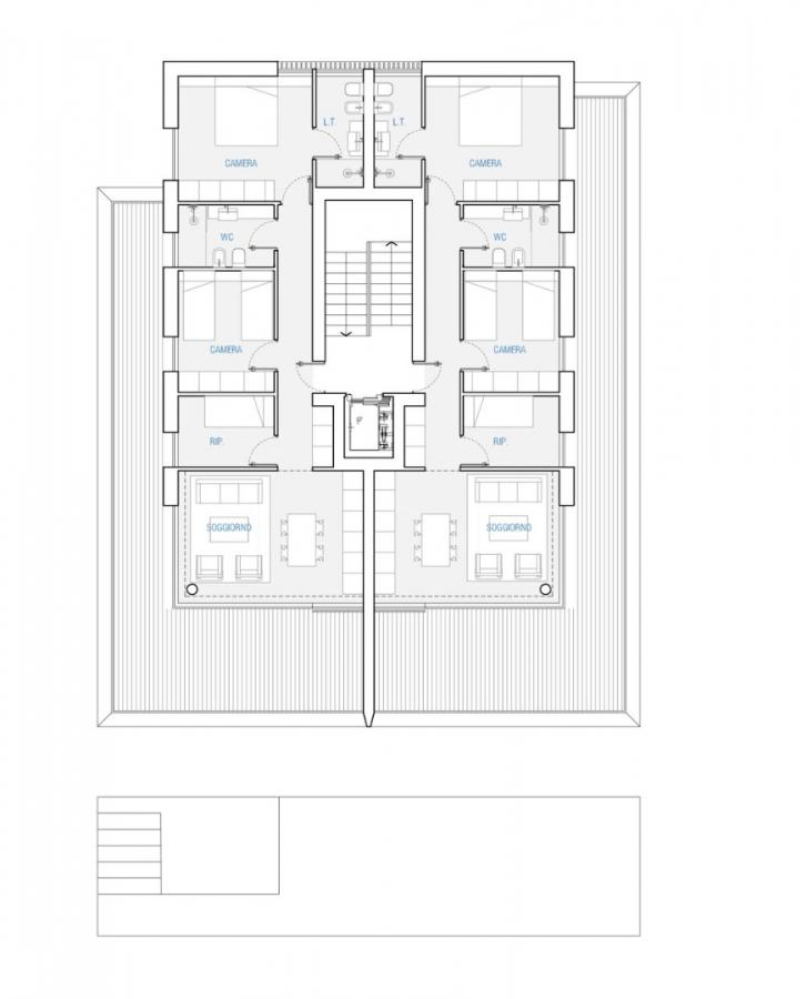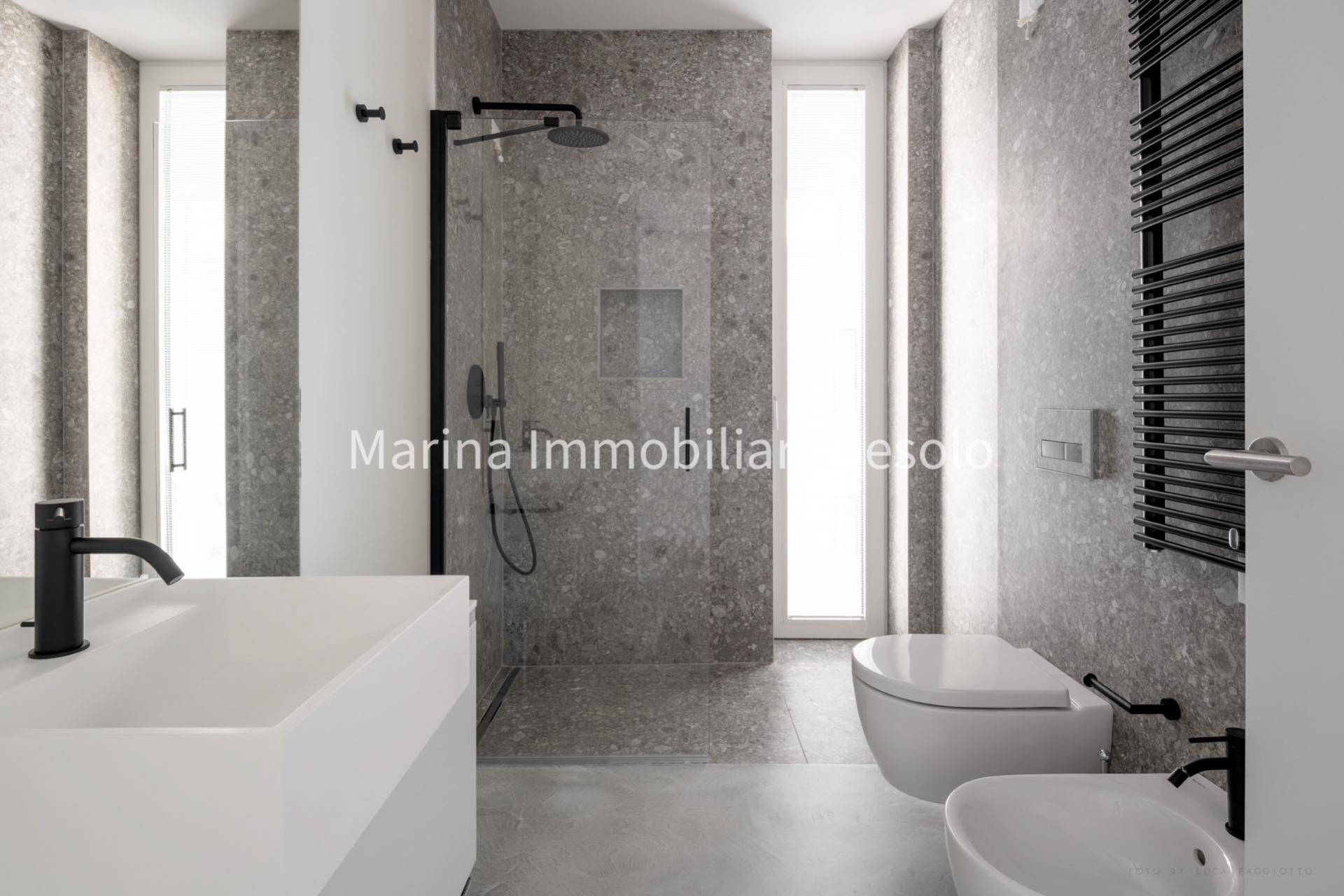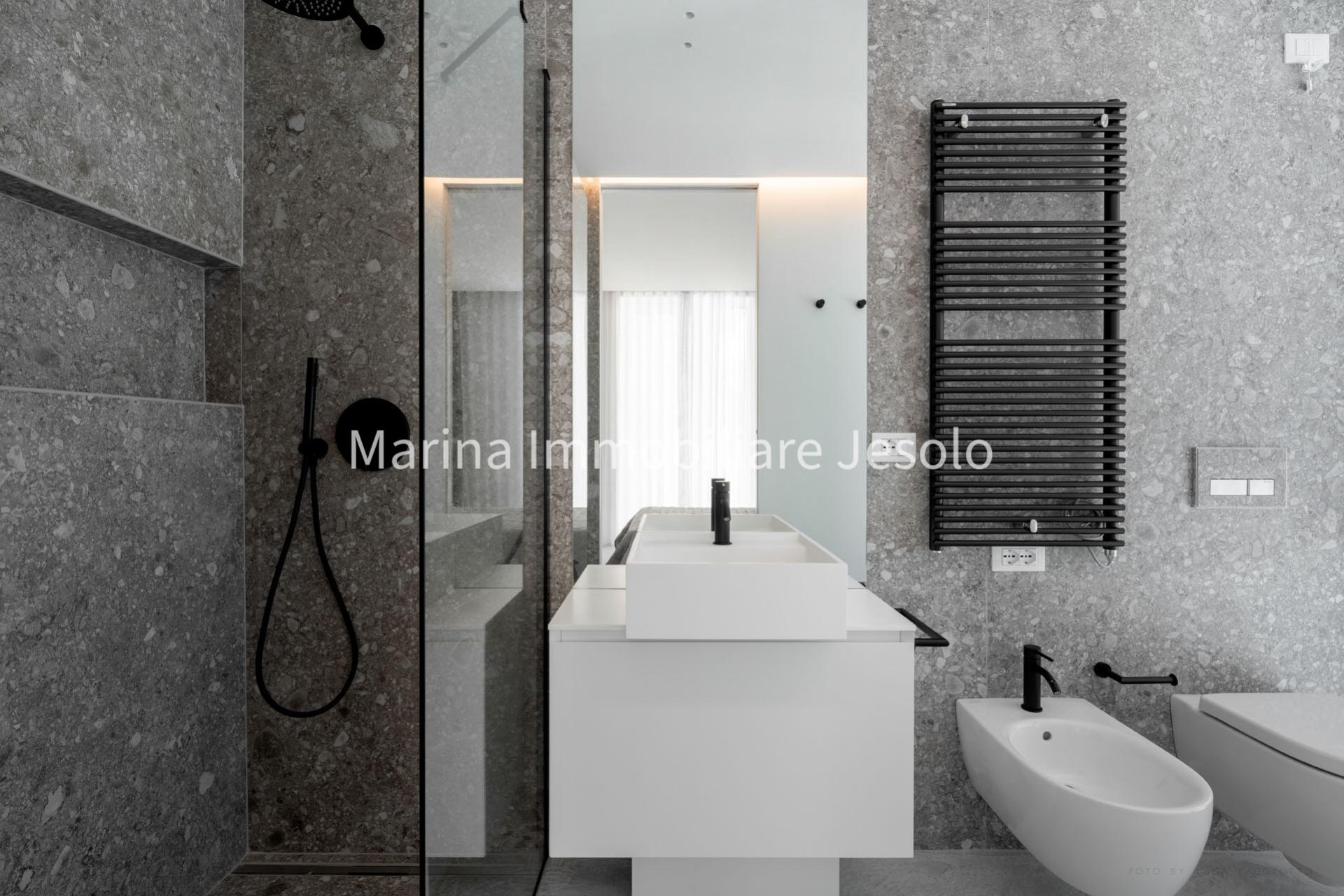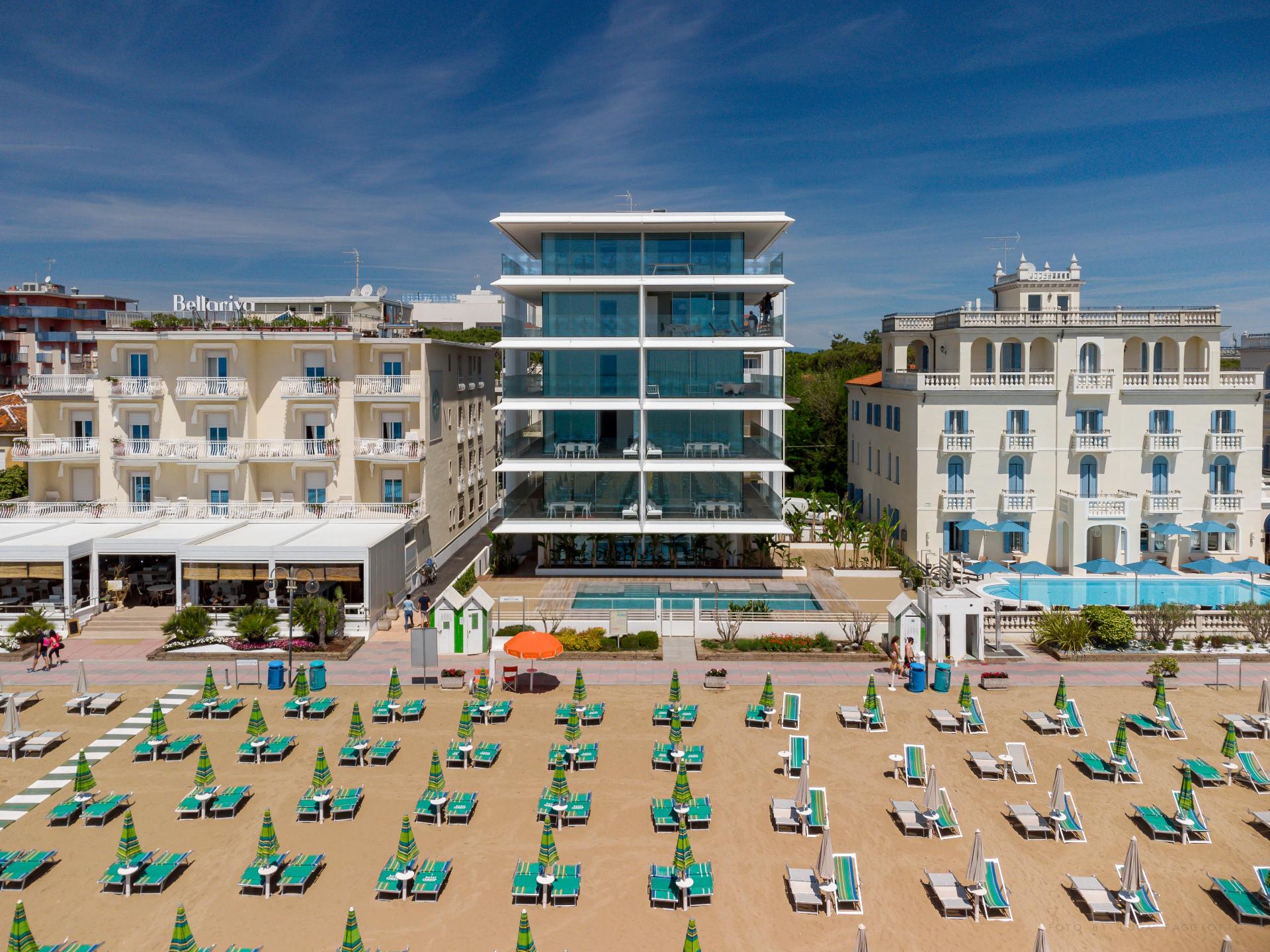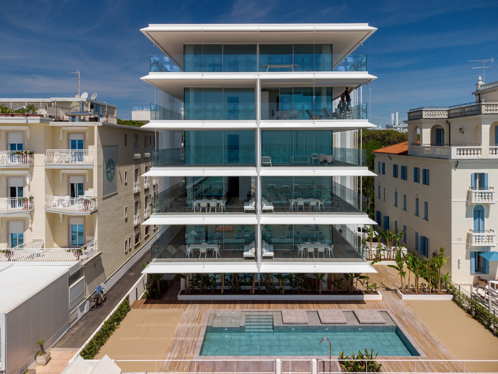 Brand new beachfront residence with swimming pool and private beach, and with modern lines. A small context, with large windows and deep terraces facing the sea. The apartment is located on the 1st floor and it is composed of: living room, kitchenette, n. 1 bedroom with double bed, n. 1 bedroom with two single beds, n. 1 bedroom with a single bed, two bathrooms, big outdoor terrace overlooking the beach. Equipped with every comfort, such as washing machine, dishwasher, TV, air conditioning, microwave, WIFI, linen service. N. 1 Parking place in the underground garage, with lift, is included. Total bed places: 5 Rentable only to families.