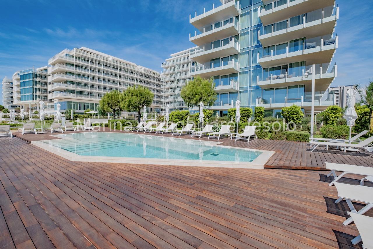 "The summer houses" is a new and prestigious building with contemporary lines, built between Manzoni Square and Milano Square, near the family-friendly equipped beaches Bau Bau Beach and Nemo Beach. This beautiful apartment, with sea side view, is located on the 3rd floor, east side, and it is composed of: living room with sofa bed, kitchenette, bedroom with double bed, bedroom with two single beds, two bathrooms and terrace. Equipped with every comfort, such as washing machine, dishwasher, TV, air conditioning, WIFI. Available to the guests: swimming pools, wellness center, small gym. N. 1 Parking place in the garage is included. N. 1 Beach place is included. Total bed places: 4+2 Rentable only to families.